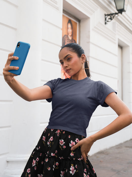 Regular price Rs. 399.00Regular priceUnit price / perRs. 799.00Sale price Rs. 399.00Women Half Sleeve Crop Top - Navy Blue