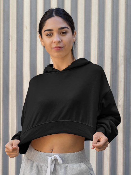 Women Full Sleeve Crop Hoodie - Black