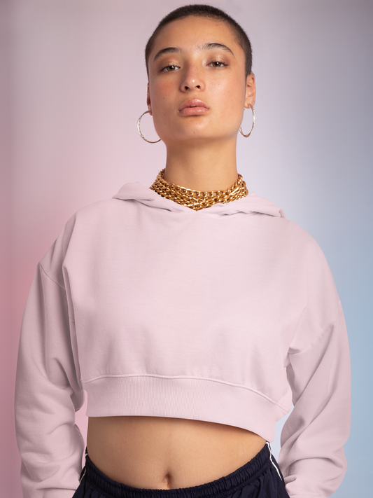 Women Full Sleeve Crop Hoodie - Light Pink